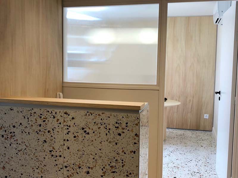 Le local a été entièrement vidé pour réagencer cette espace en lieu de travail confortable et cocooning.