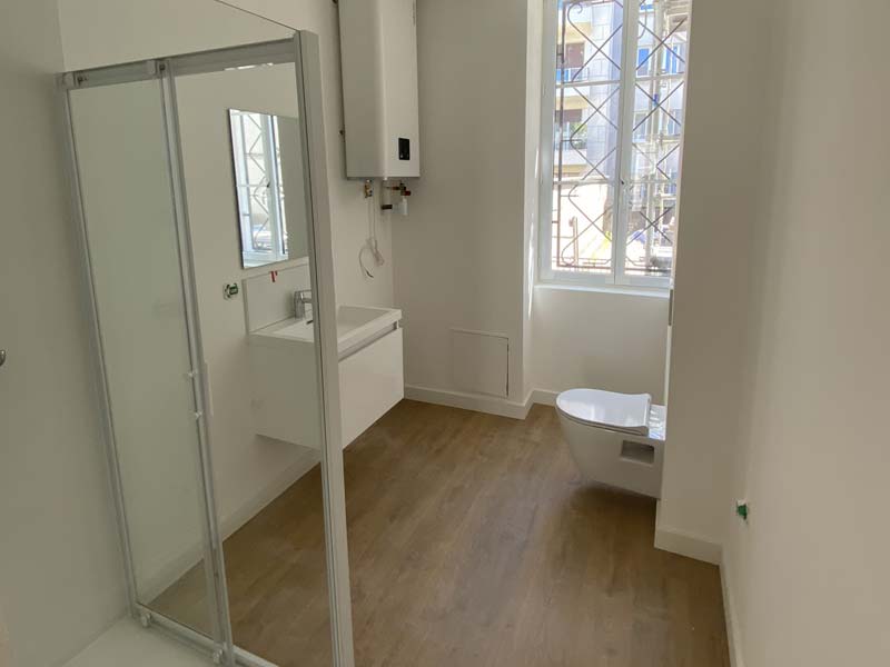 Cet immeuble a été réaménagé en un local commercial au RDC et en 3 appartements T2 d'environ 45m² entièrement repensés.