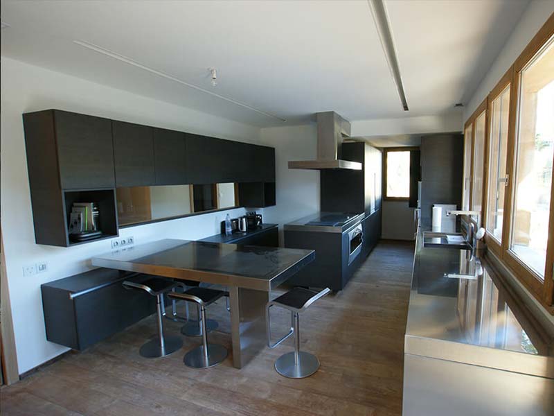 La rénovation consistait à retraiter l’ensemble des aménagements intérieurs en respectant les volumétries et d’y apporter des matériaux et mobiliers dans le style de l’habitat. Le choix des matériaux mais également des équipements à fait l’objet d’une attention particulière afin que le lieu puisse garder toute son élégance. Les sols sont traités en teck massif, mobiliers en bois, salles de bains en faïence petit carreaux, équipements de salle de bain en Corian, des appareillages élégants et discrets.